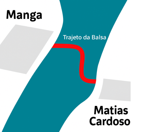 A travessia da balsa está localizada ao norte do estado de Minas Gerais, entre os municípios de Manga e Matias Cardoso, abrangendo trecho da rodovia BR-135 a uma margem da cidade de Manga e o início da MG-401 a margem do município de Matias Cardoso, acesso que liga estas duas localidades.