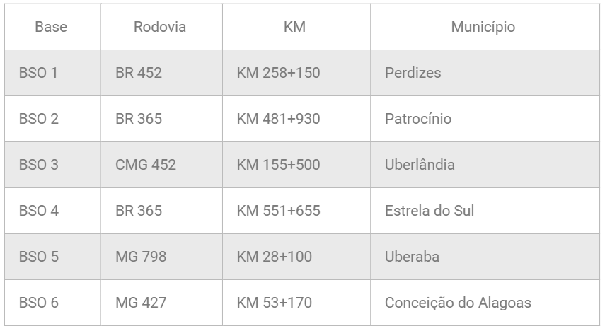 – Veículos de uso do Comando de Policiamento Rodoviário da Polícia Militar do Estado de Minas Gerais;