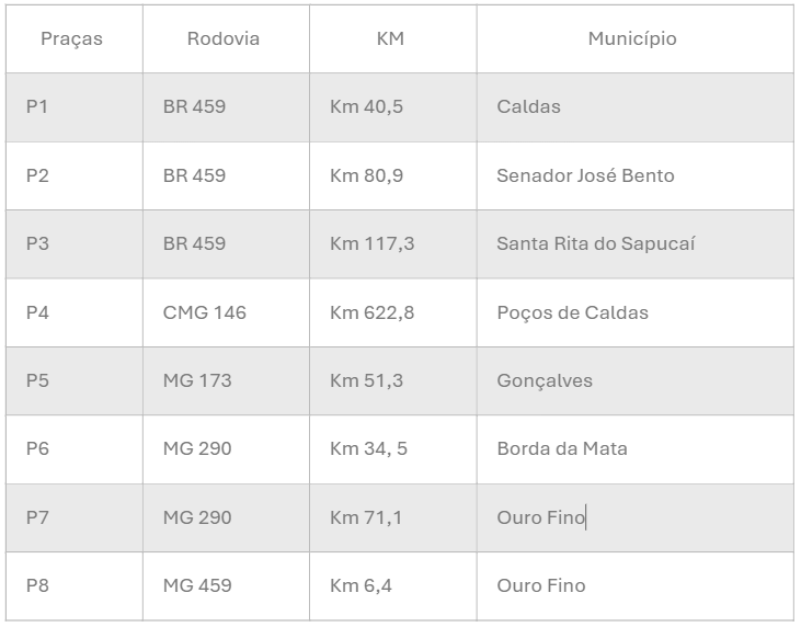 Delegatária: Concessionária Rodovias do Sul De Minas SPE S.A.