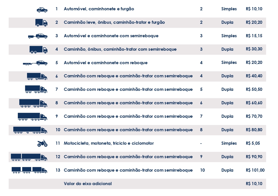 Veículos isentos do pagamento de pedágio
